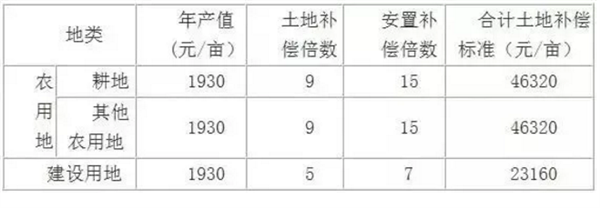 (一)土地补偿费和安置补助费标准