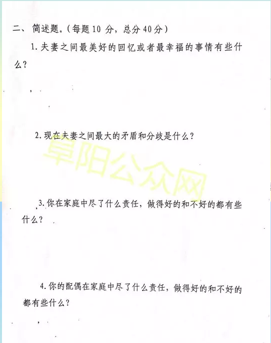 接下来一起看看这份太和县人民法院命题的婚姻试卷,测测你能得多少分?